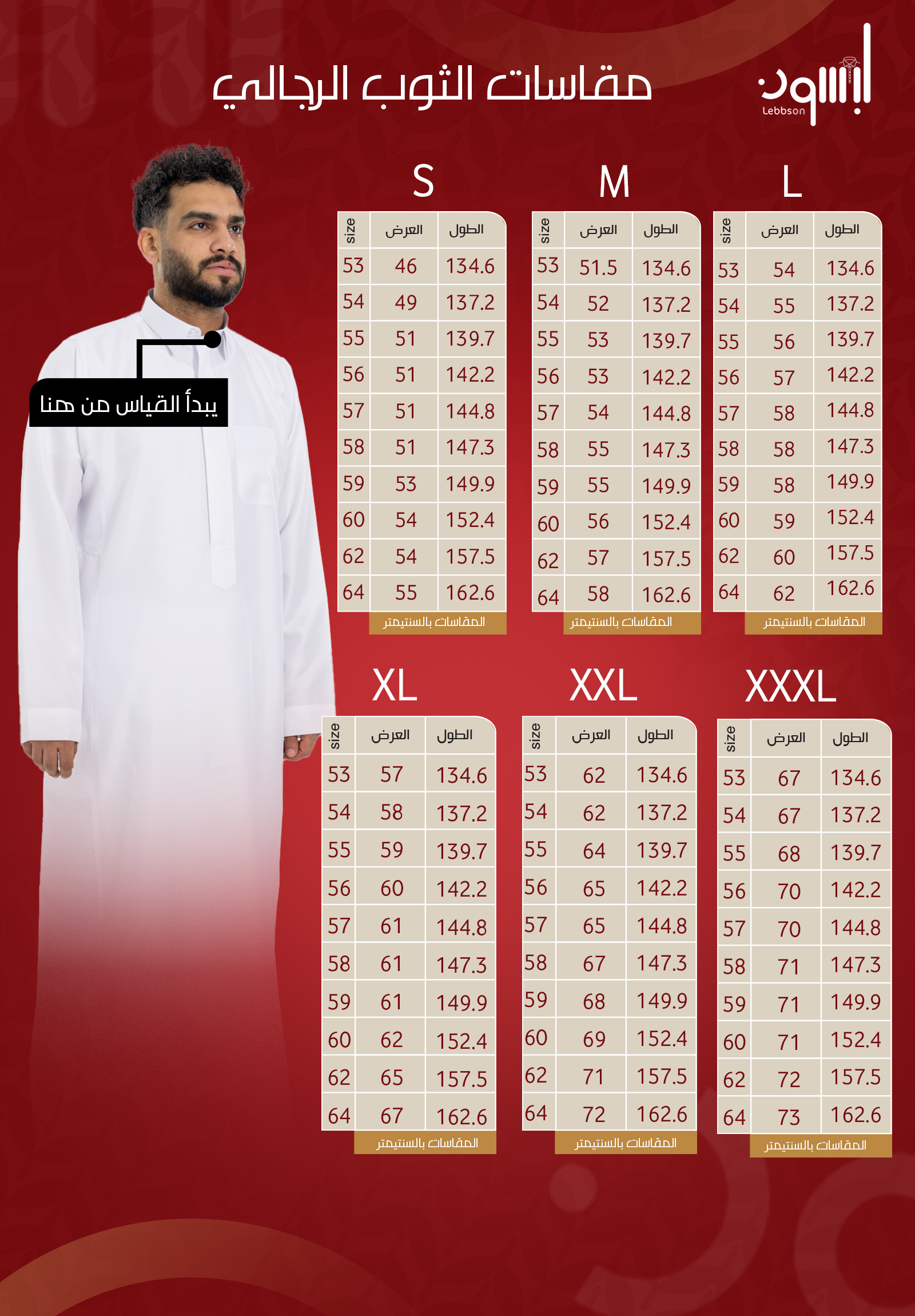 - تنوع المقاسات تتيح لك اختيار ما يناسبك بسهولة.